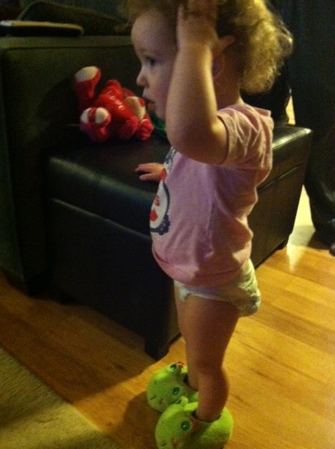 #15) In other footwear news, Faith finally will get within 6 feet of these slippers Grandma Jan bought her for Christmas. I don't know what frogs ever did to her, but she finally decided to forgive and forget.